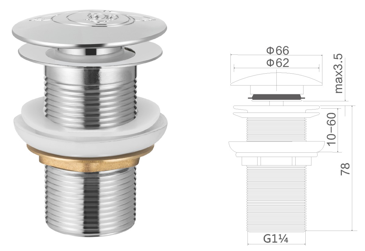 Латунные отходы для умывальника 1 1/4" clic-clac
