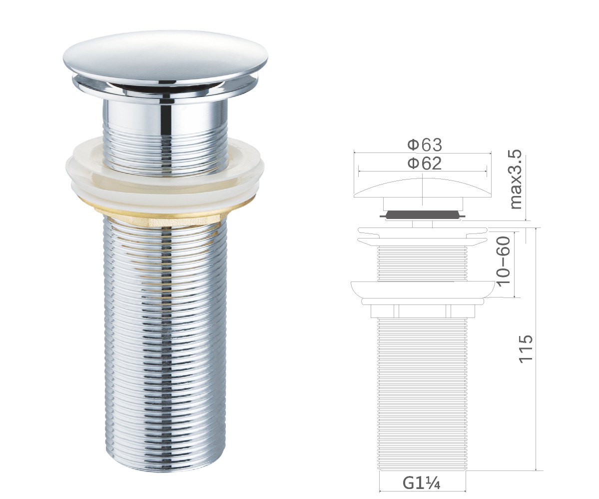 Латунная вода для общественного умывальника 1 1/4" fixed cover not clic-clac