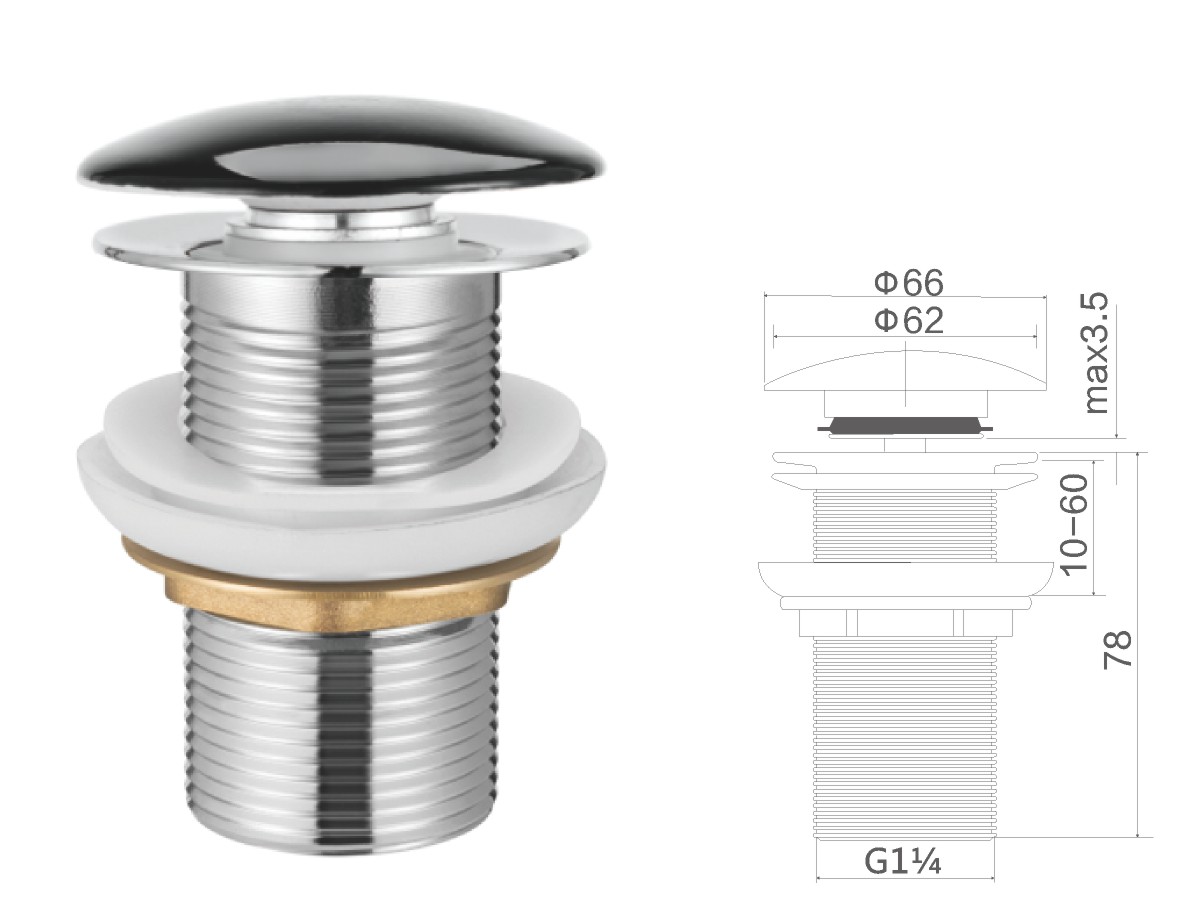Вода для умывальника из нержавеющей стали 1 1/4" clic-clac