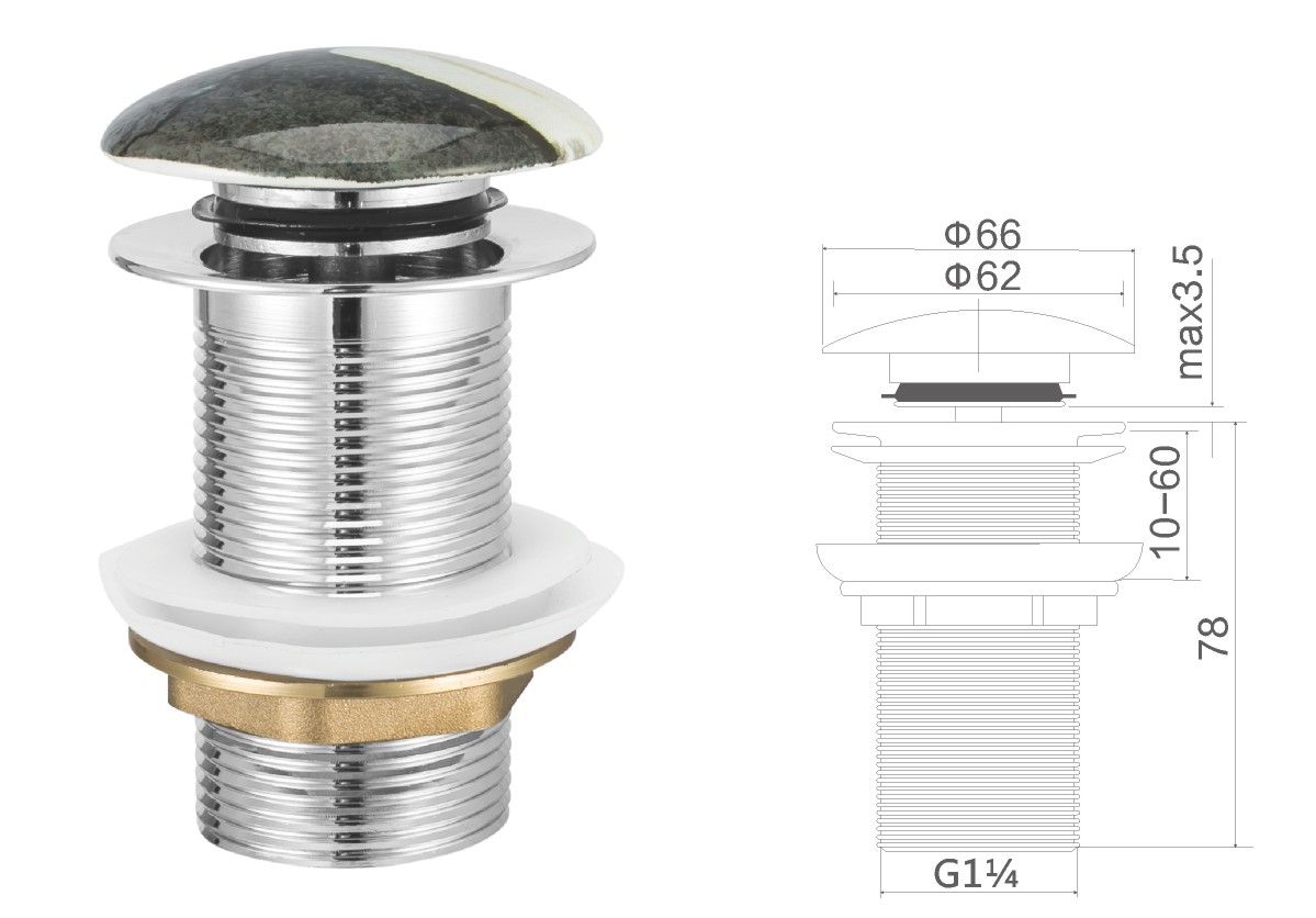 Вода для умывальника из нержавеющей стали 1 1/4" clic-clac