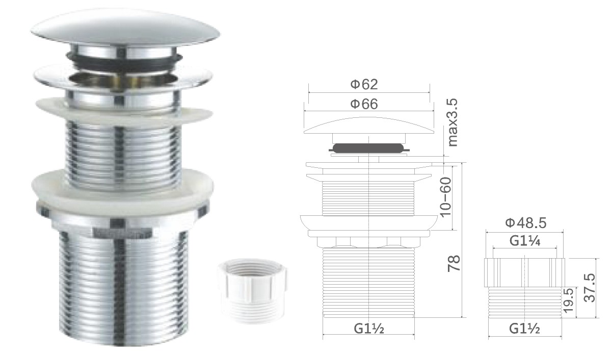 Вода для умывальника из нержавеющей стали 1 1/4" clic-clac
