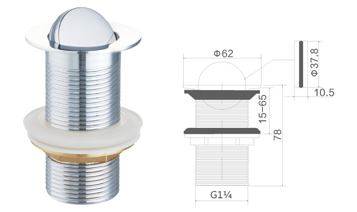 Латунная вода для общественного умывальника 1 1/4" fixed cover not clic-clac