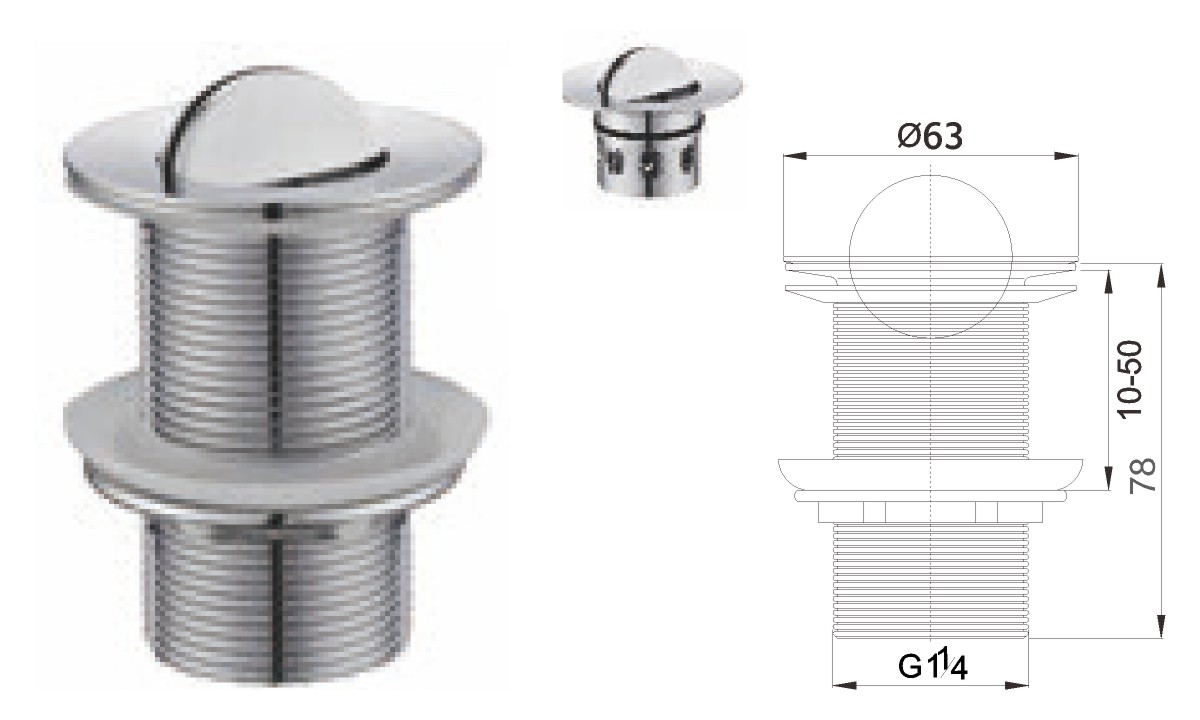 Латунная вода для общественного умывальника 1 1/4" fixed cover not clic-clac