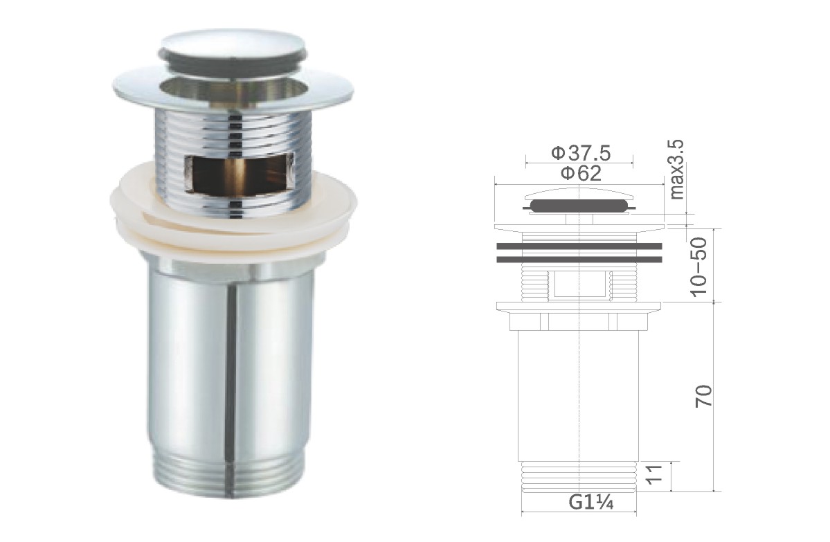 Латунная вода для общественного умывальника 1 1/4" fixed cover not clic-clac