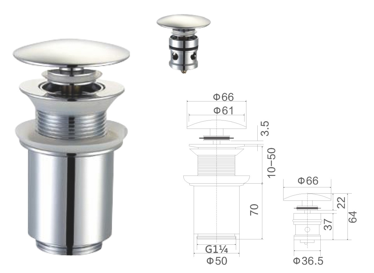 Латунная вода для общественного умывальника 1 1/4" fixed cover not clic-clac
