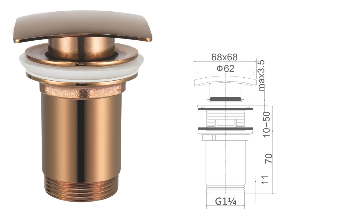 Латунный стакан для ванны 1 1/2",clic-clac