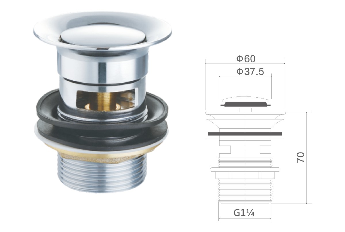 Латунная вода для общественного умывальника 1 1/4" fixed cover not clic-clac