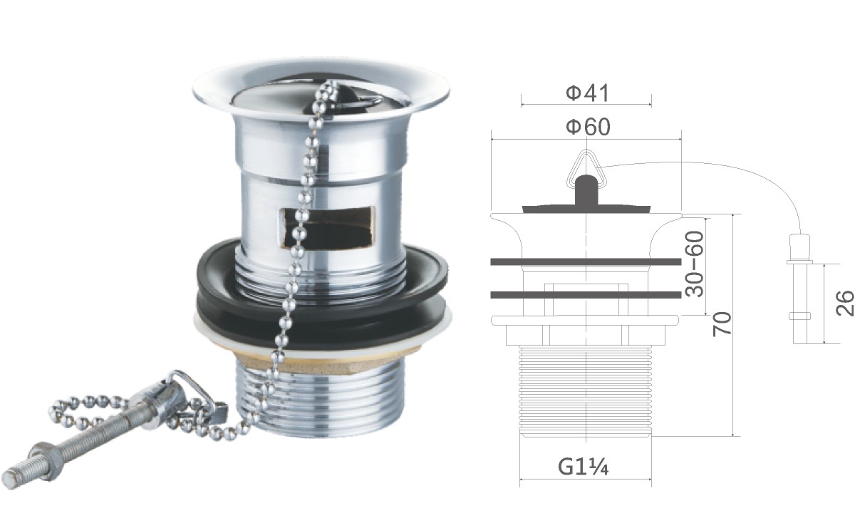 Вода для умывальника из нержавеющей стали 1 1/4" clic-clac