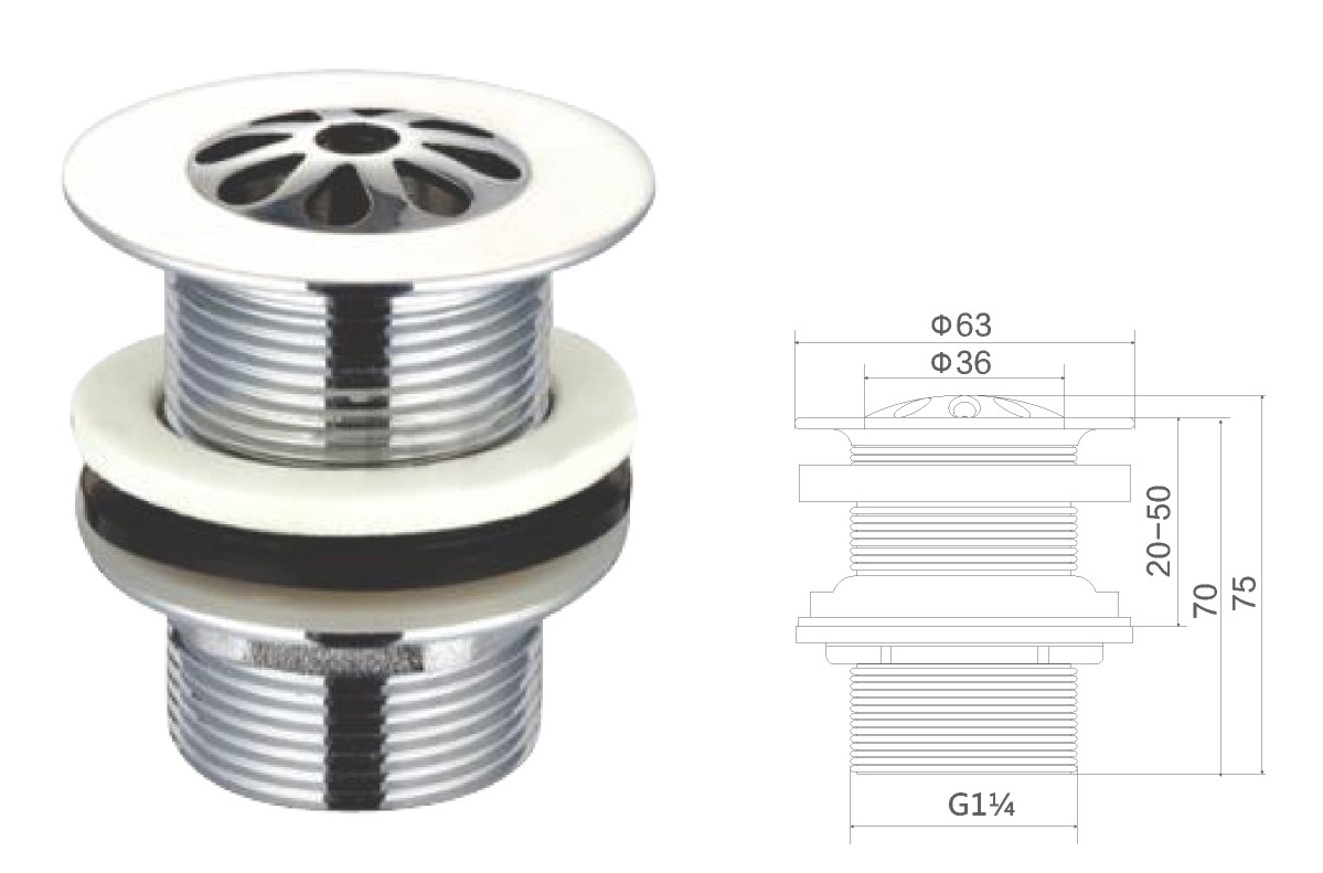 Латунная вода для общественного умывальника 1 1/4" fixed cover not clic-clac