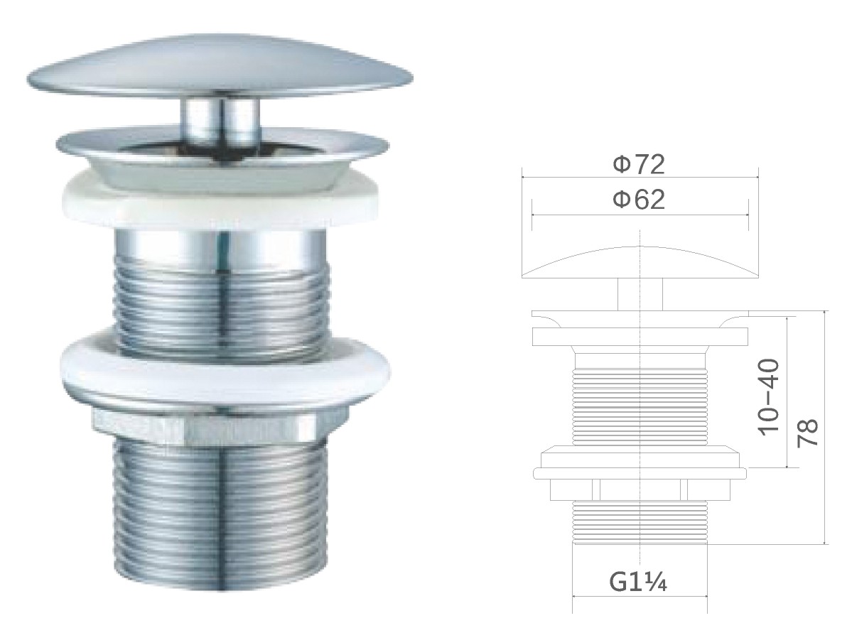 Латунная вода для общественного умывальника 1 1/4" fixed cover not clic-clac