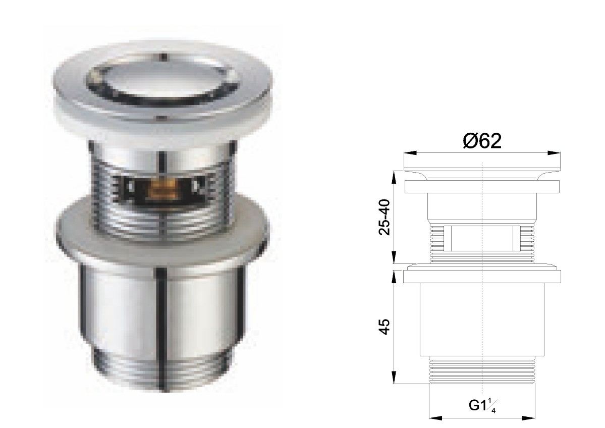Латунная вода для общественного умывальника 1 1/4" fixed cover not clic-clac
