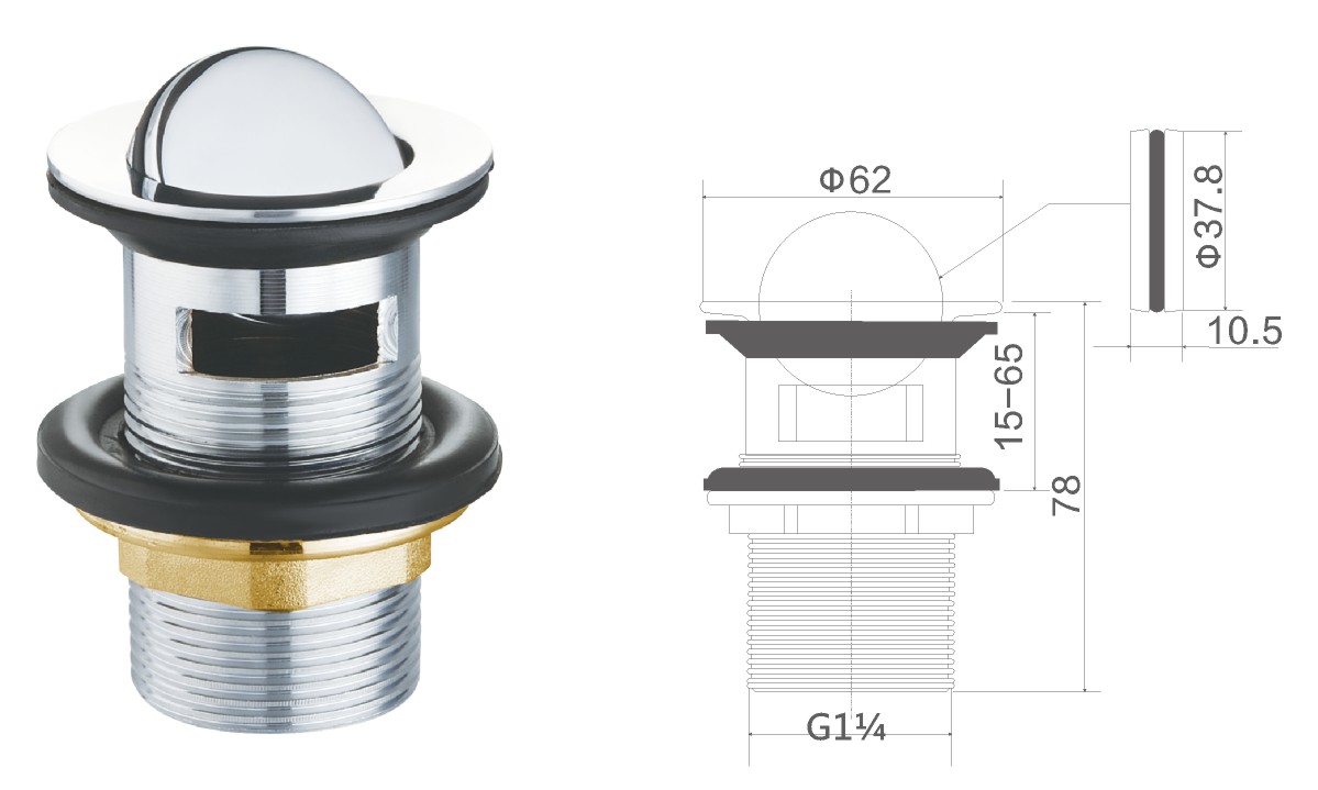 Латунная вода для общественного умывальника 1 1/4" fixed cover not clic-clac