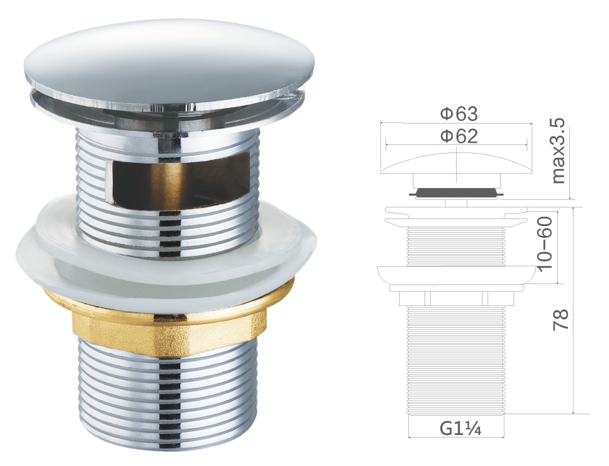 Латунная вода для общественного умывальника 1 1/4" fixed cover not clic-clac