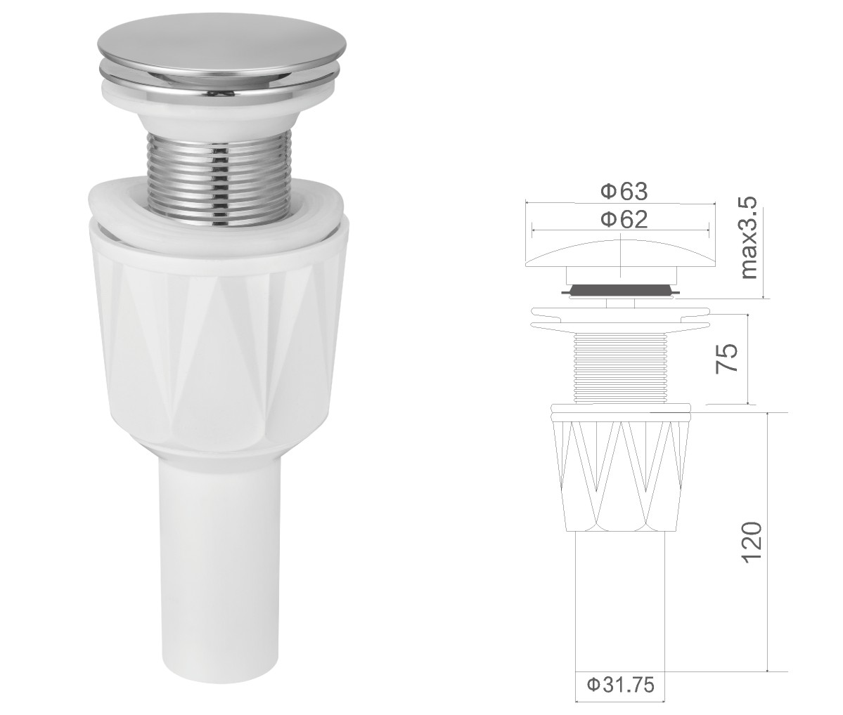 Вода для умывальника из нержавеющей стали 1 1/4" clic-clac