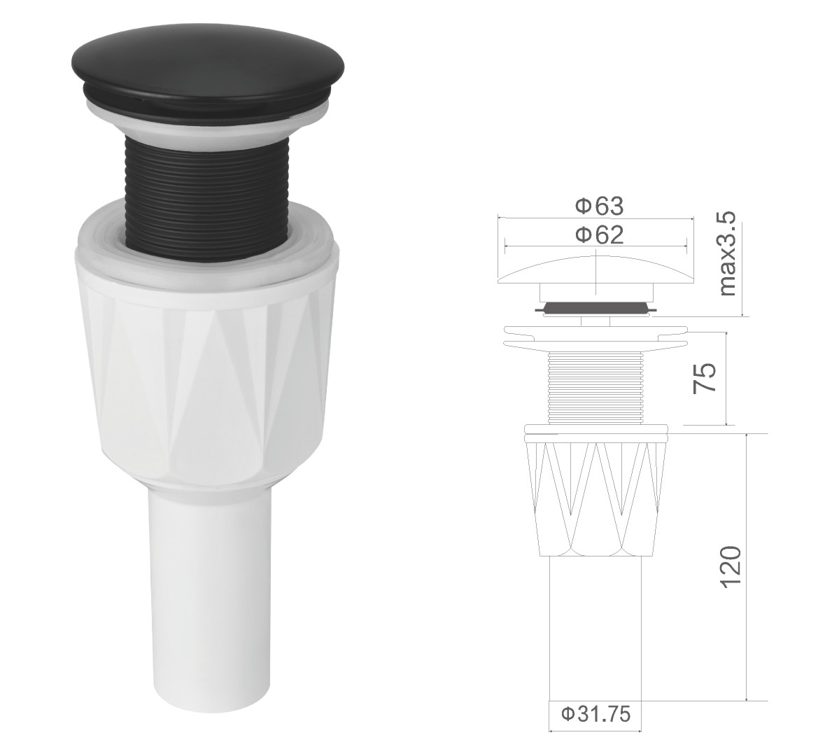 Вода для умывальника из нержавеющей стали 1 1/4" clic-clac