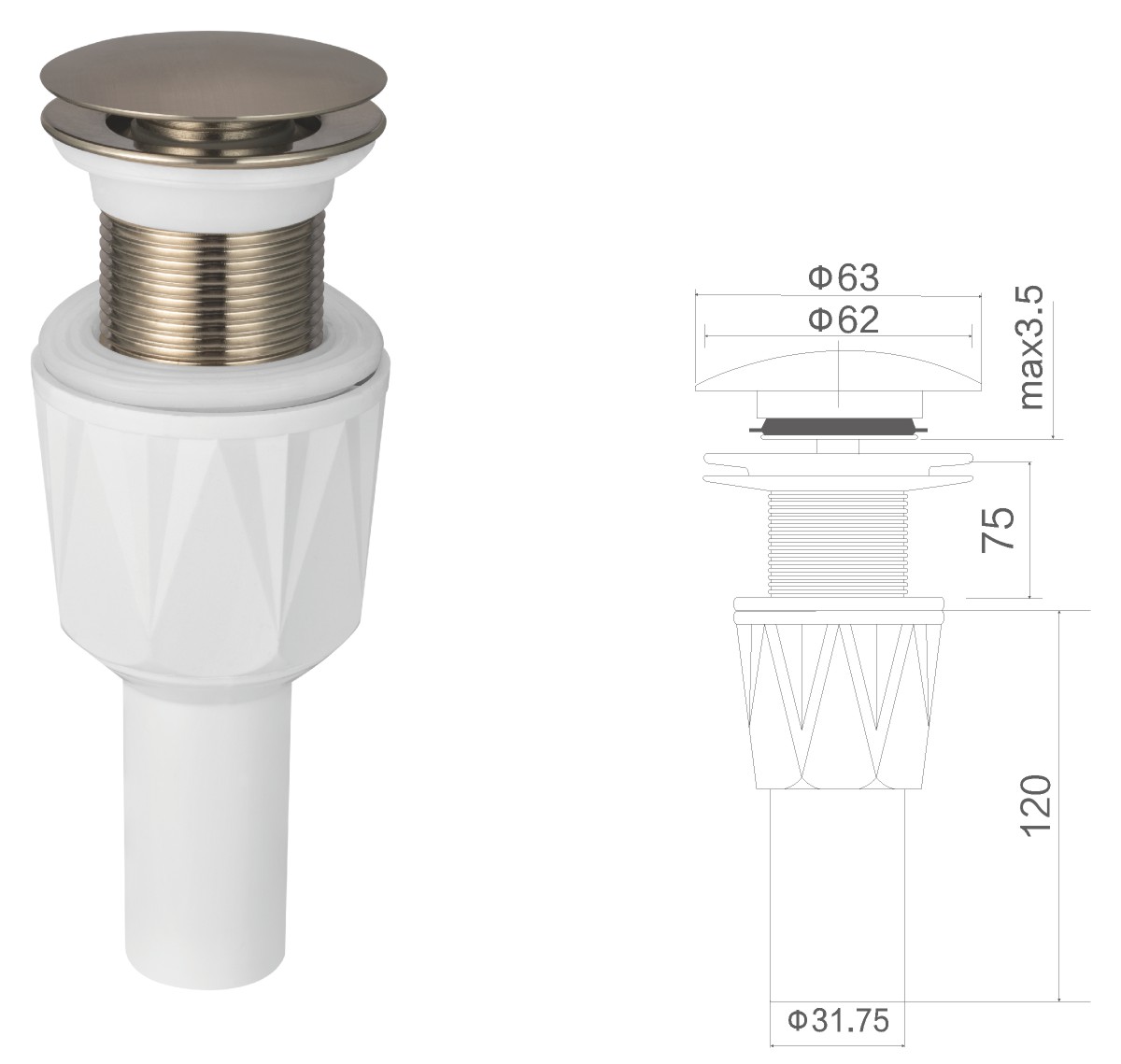 Вода для умывальника из нержавеющей стали 1 1/4" clic-clac