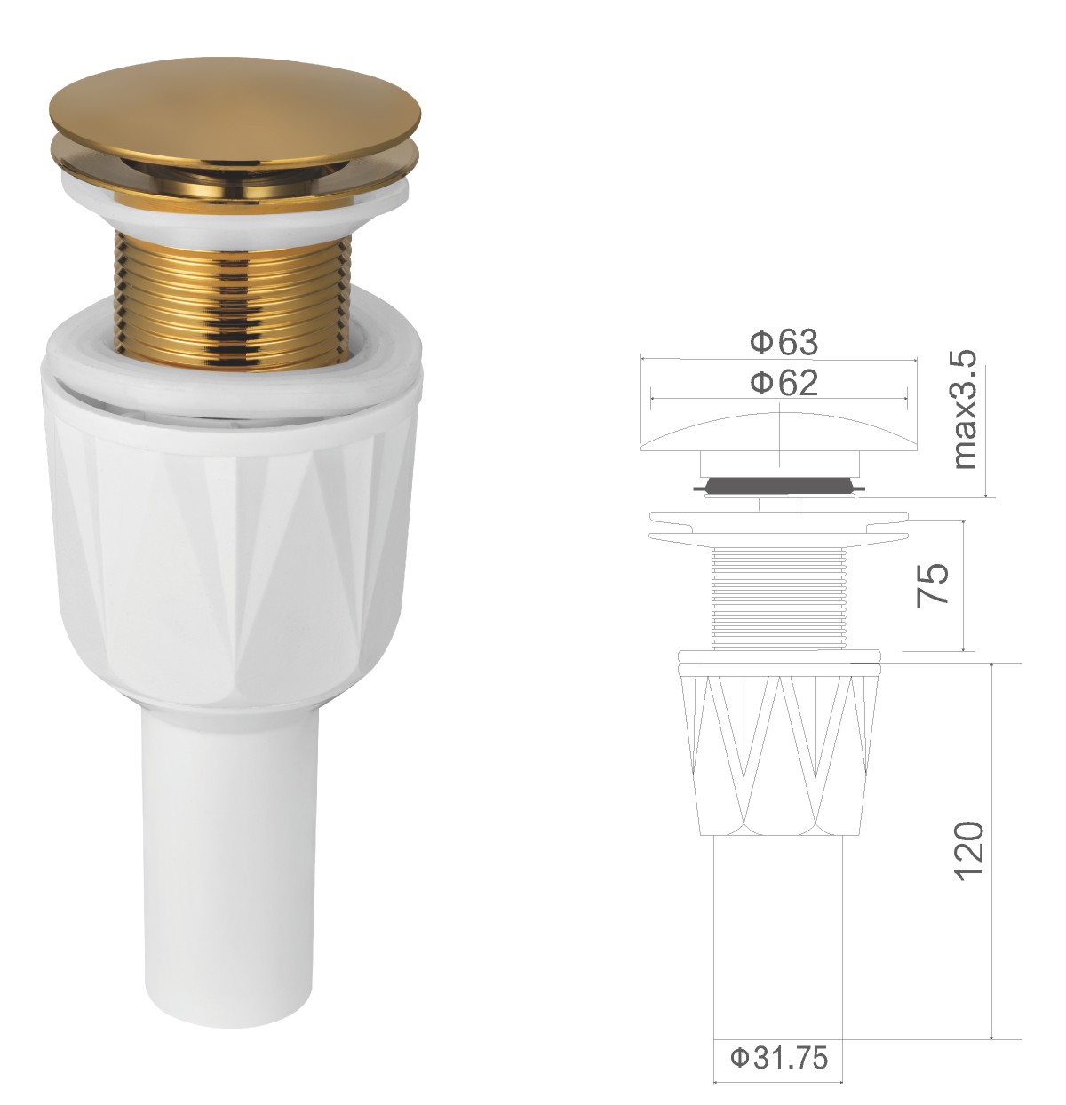 Латунные отходы для умывальника 1 1/4" clic-clac