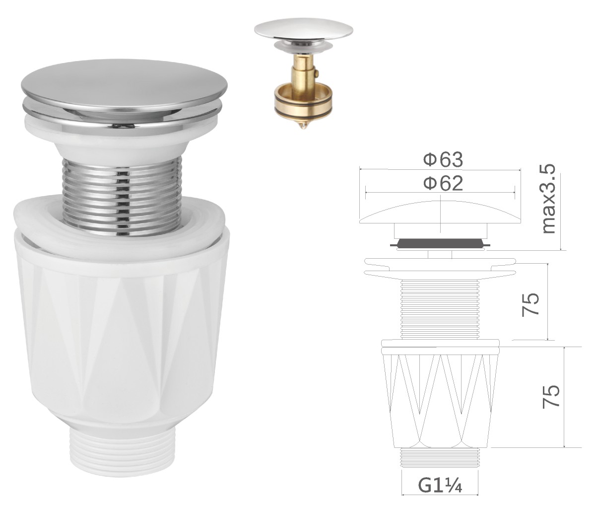Вода для умывальника из нержавеющей стали 1 1/4" clic-clac