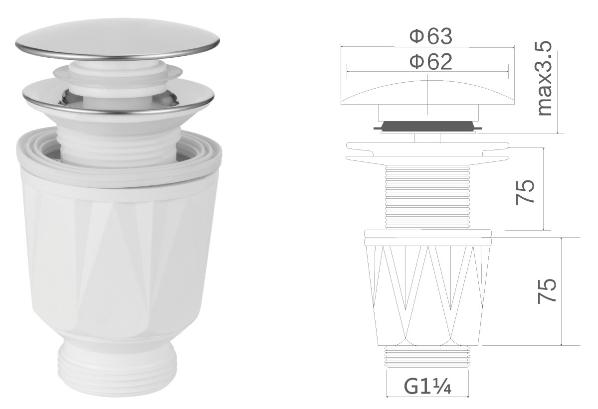 Вода для умывальника из нержавеющей стали 1 1/4" clic-clac