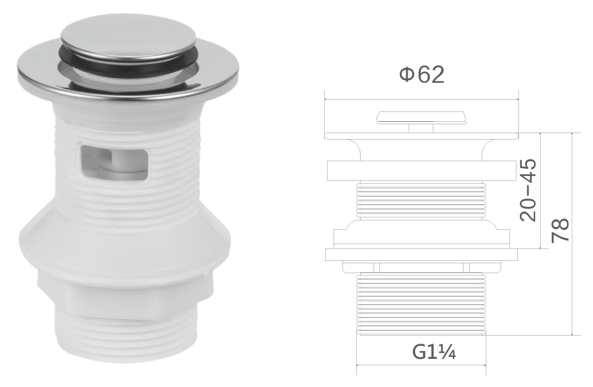 Вода для умывальника из нержавеющей стали 1 1/4" clic-clac