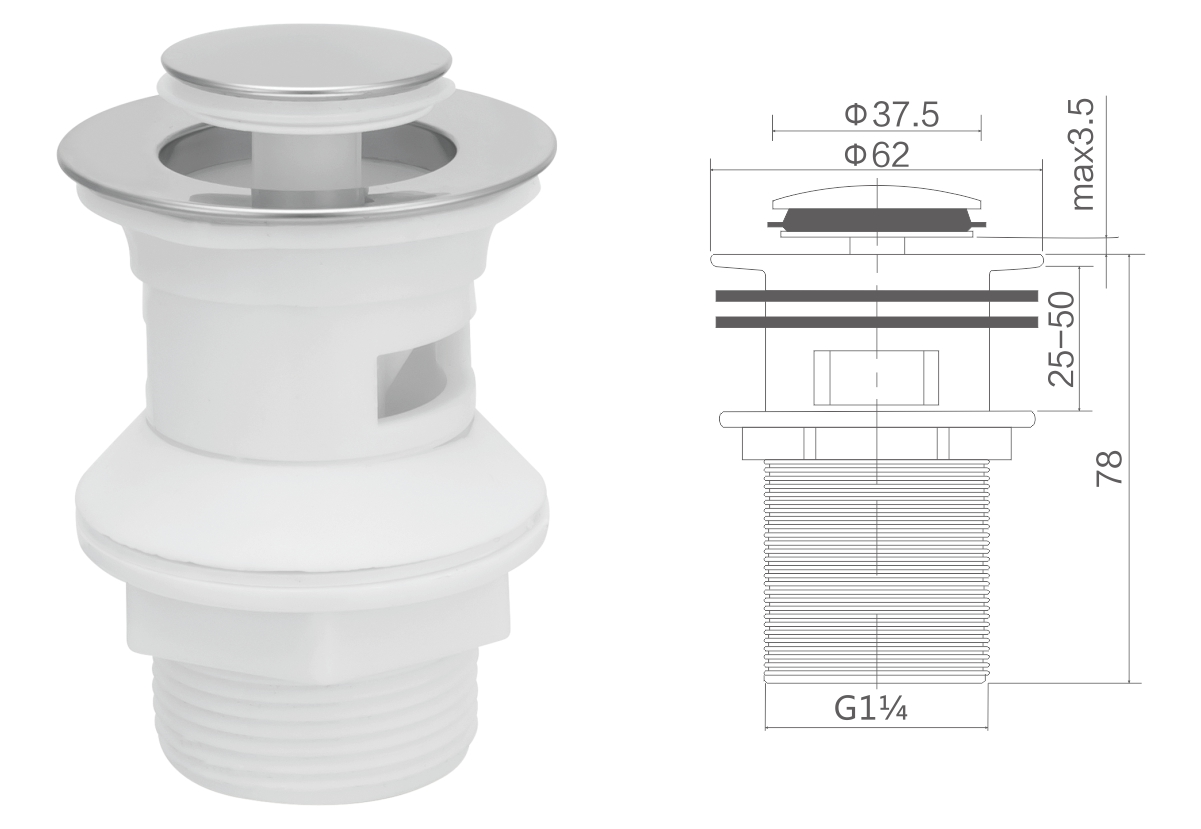 Вода для умывальника из нержавеющей стали 1 1/4" clic-clac