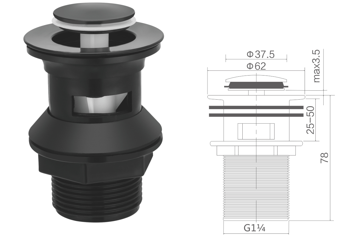Вода для умывальника из нержавеющей стали 1 1/4" clic-clac