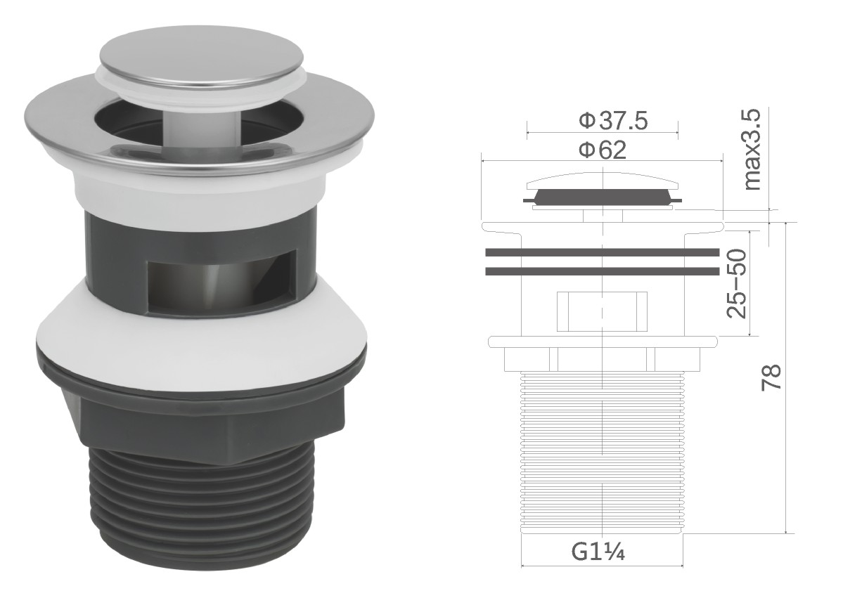 Вода для умывальника из нержавеющей стали 1 1/4" clic-clac