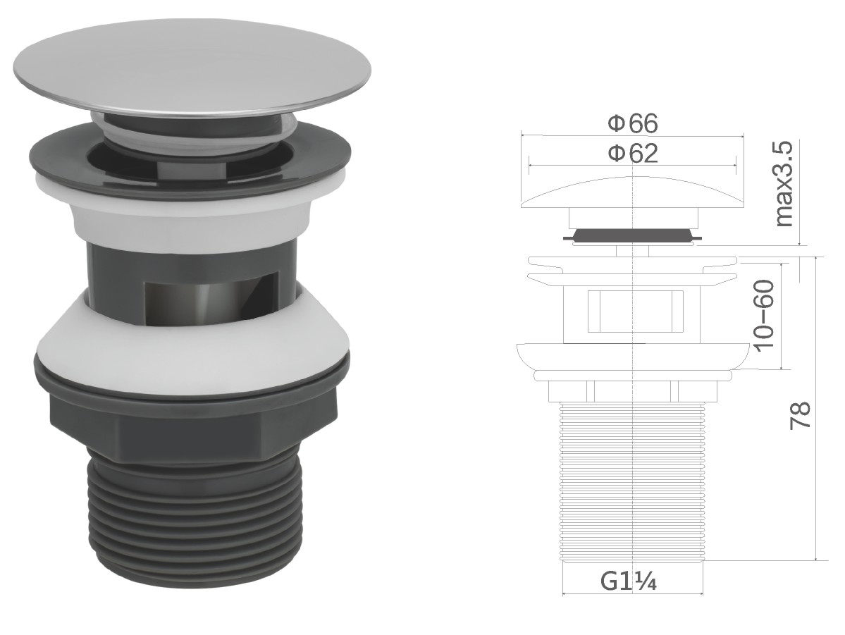 Вода для умывальника из нержавеющей стали 1 1/4" clic-clac