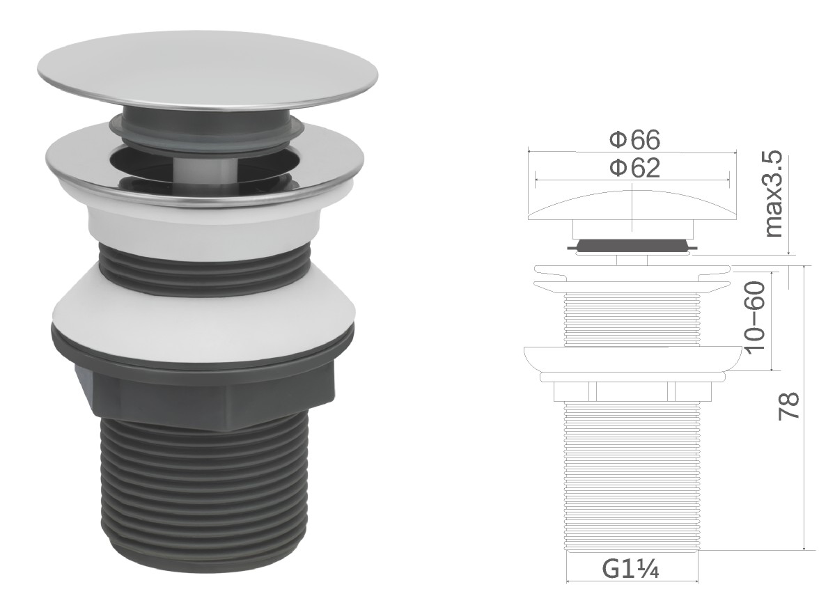 Вода для умывальника из нержавеющей стали 1 1/4" clic-clac