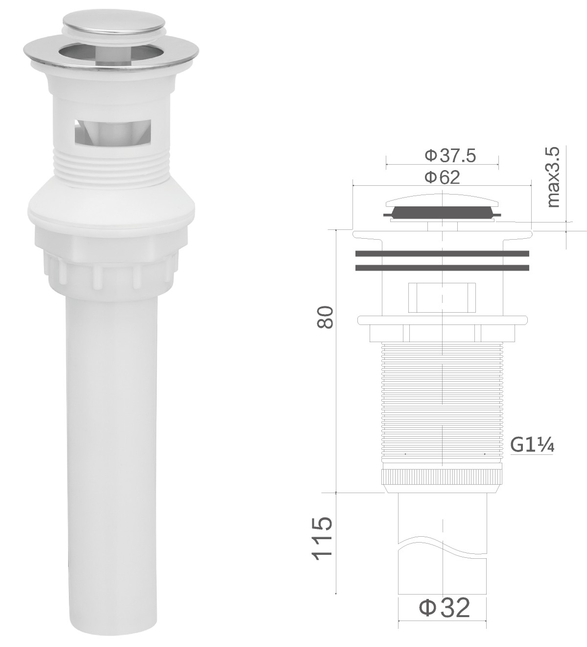 Вода для умывальника из нержавеющей стали 1 1/4" clic-clac