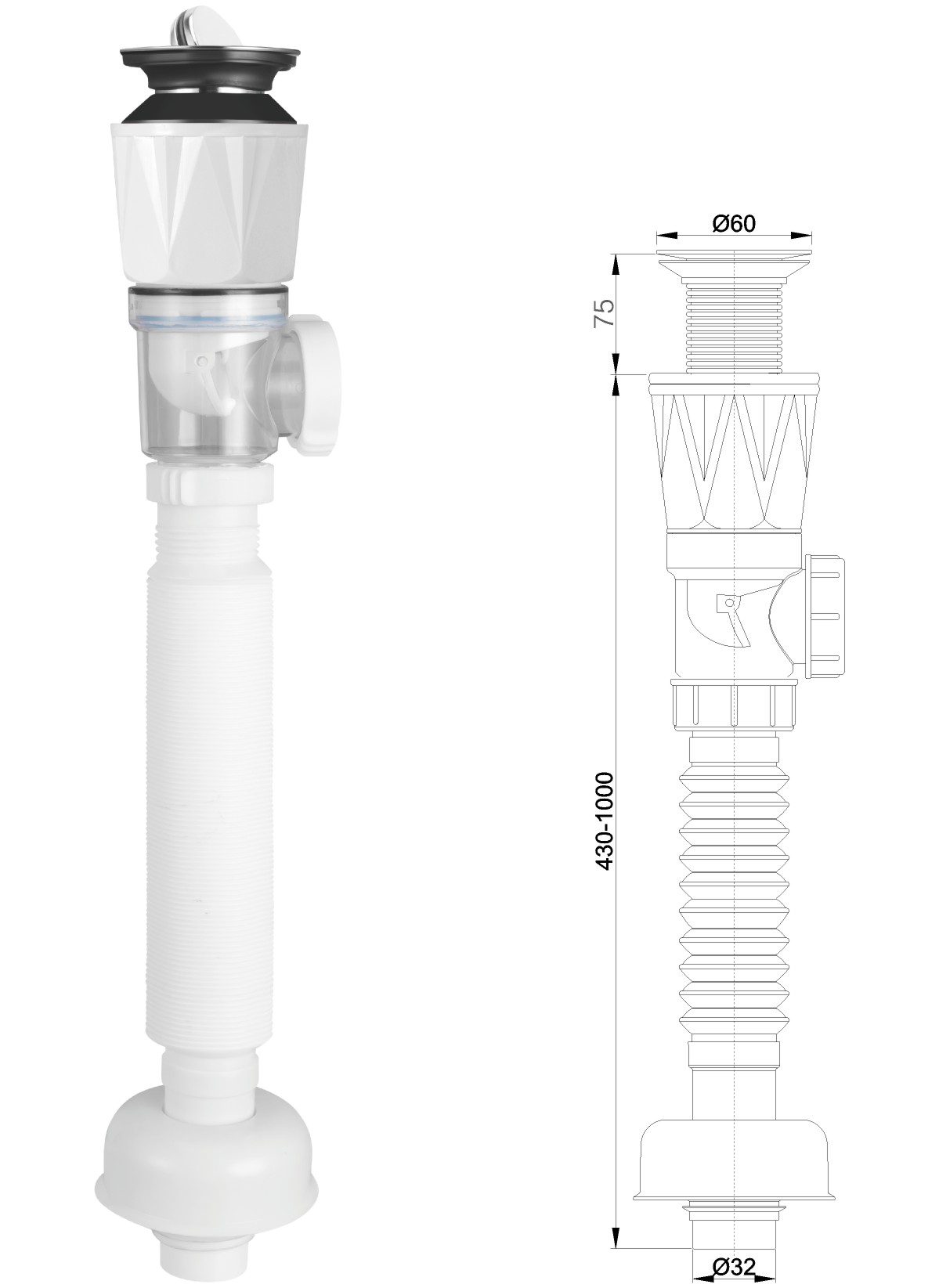 Вода для умывальника из нержавеющей стали 1 1/4" clic-clac