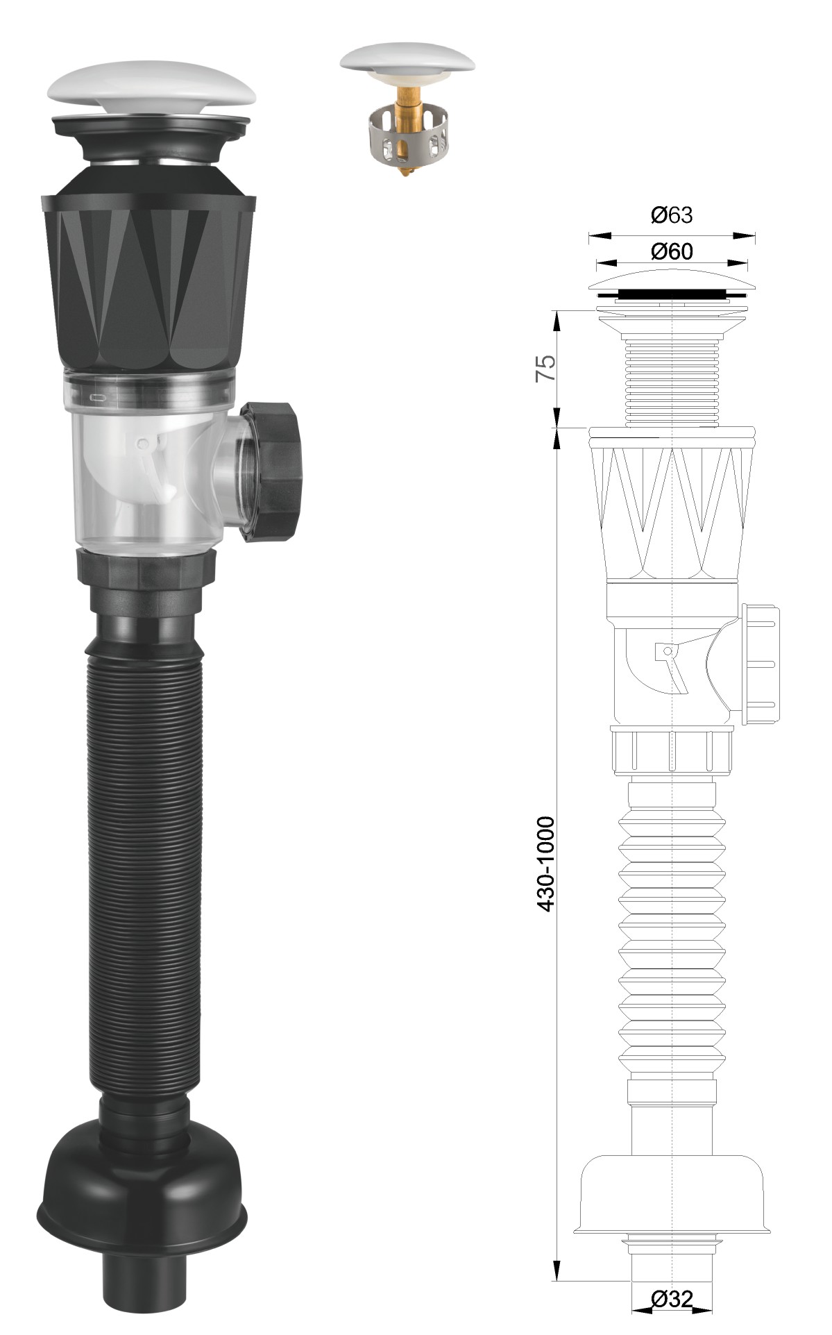 Вода для умывальника из нержавеющей стали 1 1/4" clic-clac