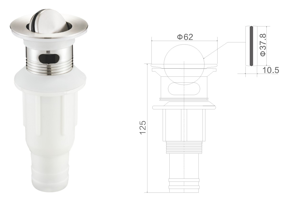 Вода для умывальника из нержавеющей стали 1 1/4" clic-clac