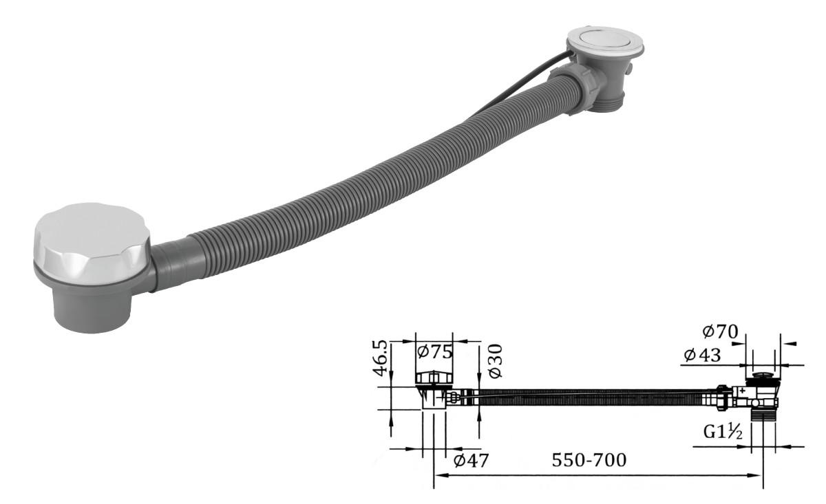 Вода для умывальника из нержавеющей стали 1 1/4" clic-clac