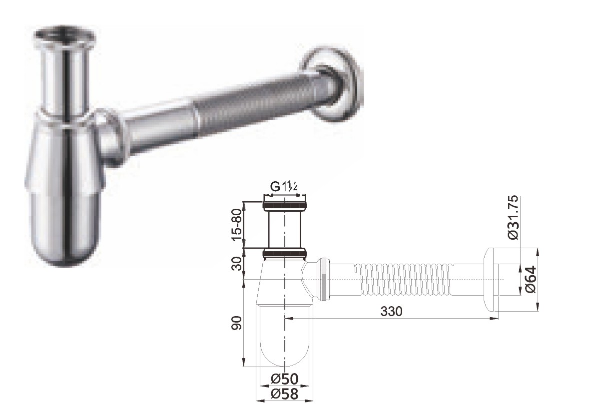 Нержавеющая сталь 304 сифон 1 1/4"