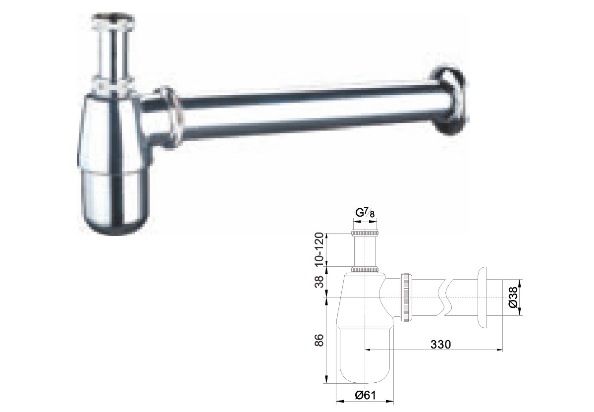 Цинковый круглый сифон с черной лакировкой 1 1/4"