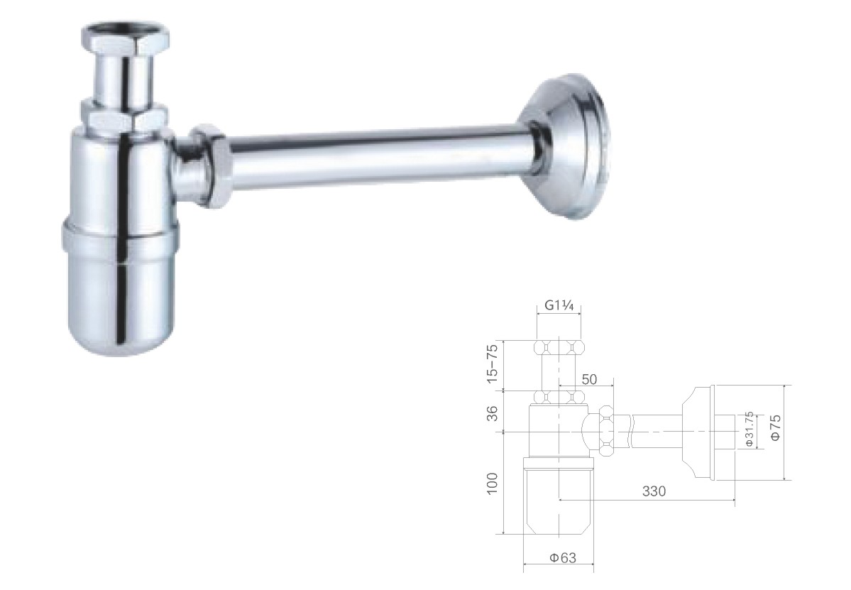 Цинковый круглый сифон с черной лакировкой 1 1/4"