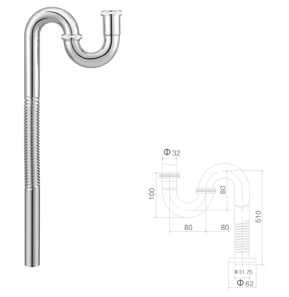Нержавеющая сталь 304 сифон 1 1/4"