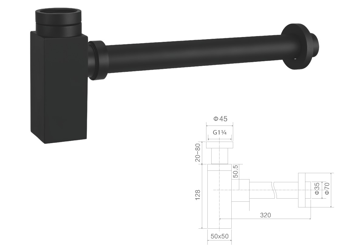 Цинковый круглый сифон с черной лакировкой 1 1/4"
