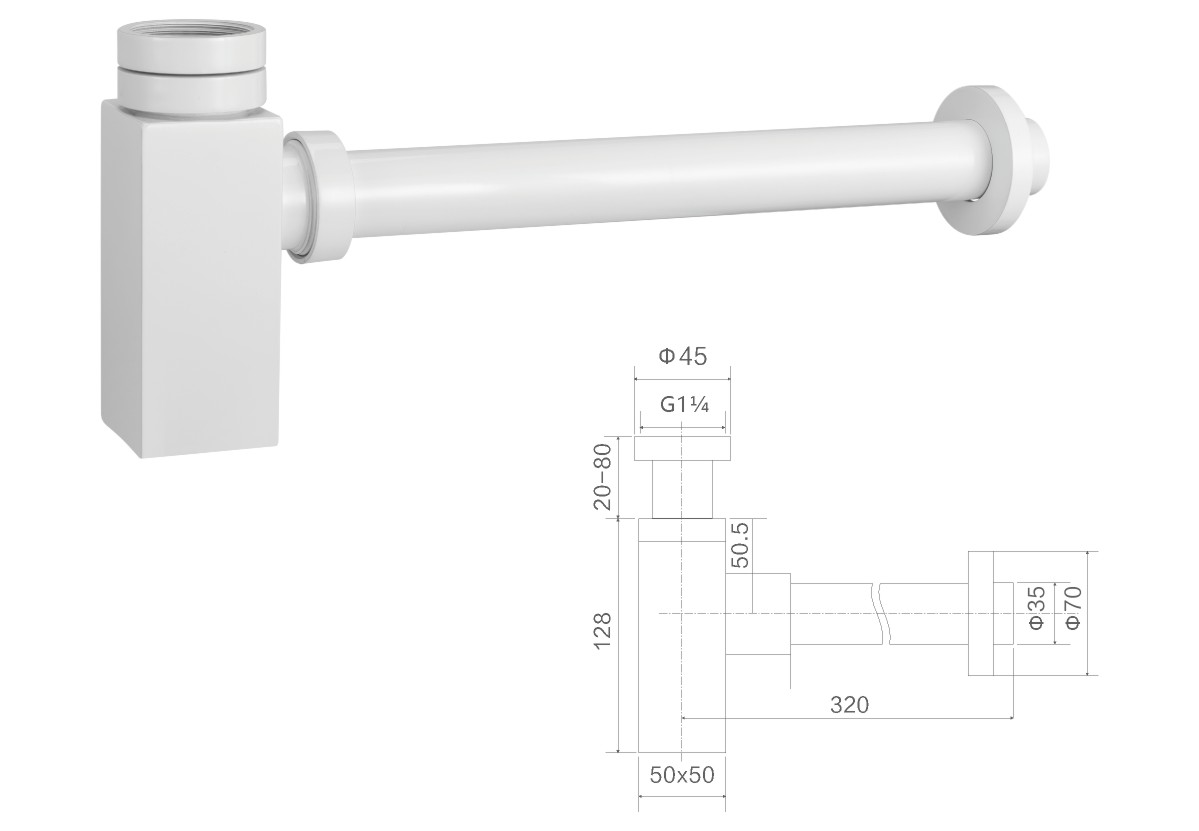 Цинковый круглый сифон с черной лакировкой 1 1/4"