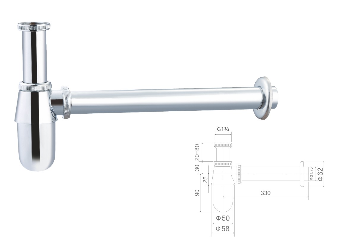 Цинковый круглый сифон с черной лакировкой 1 1/4"