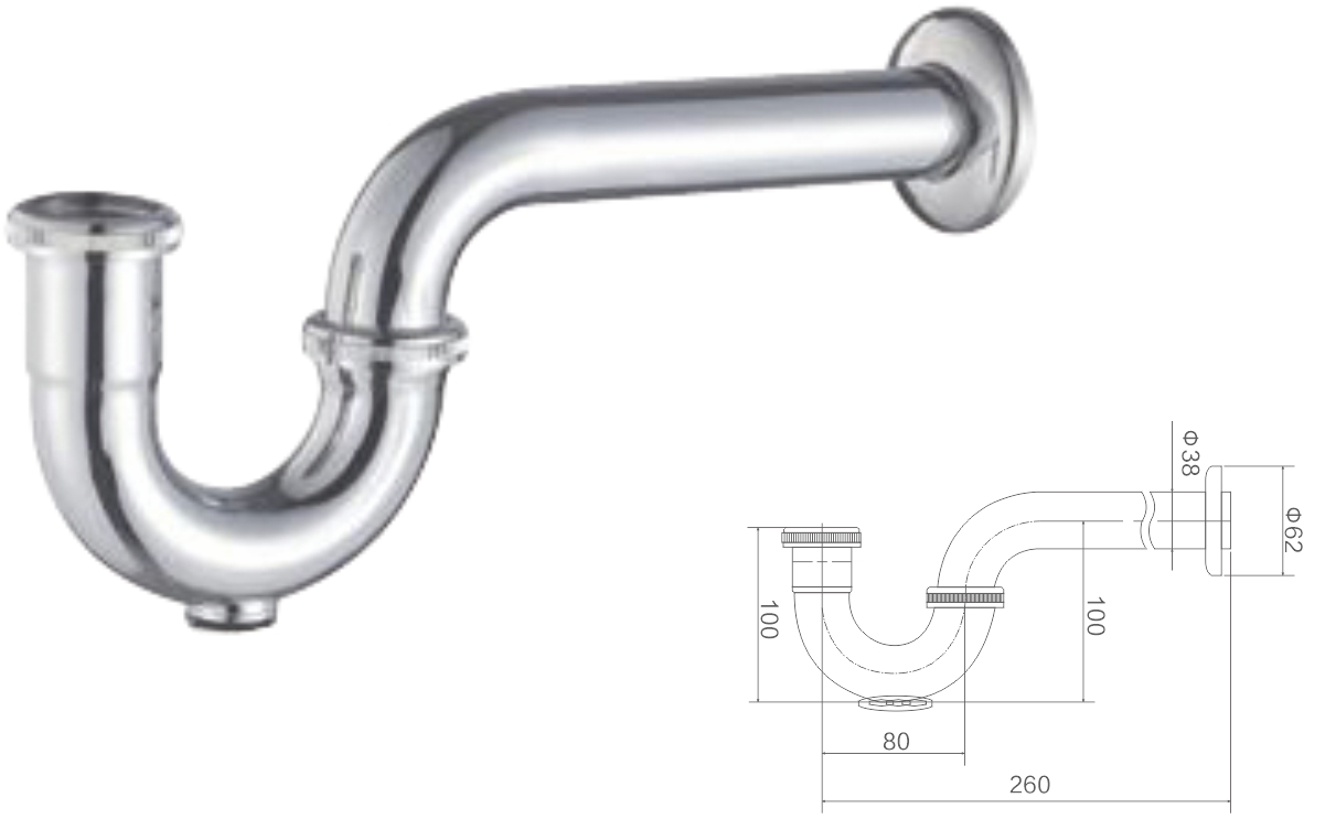 Цинковый круглый сифон с черной лакировкой 1 1/4"