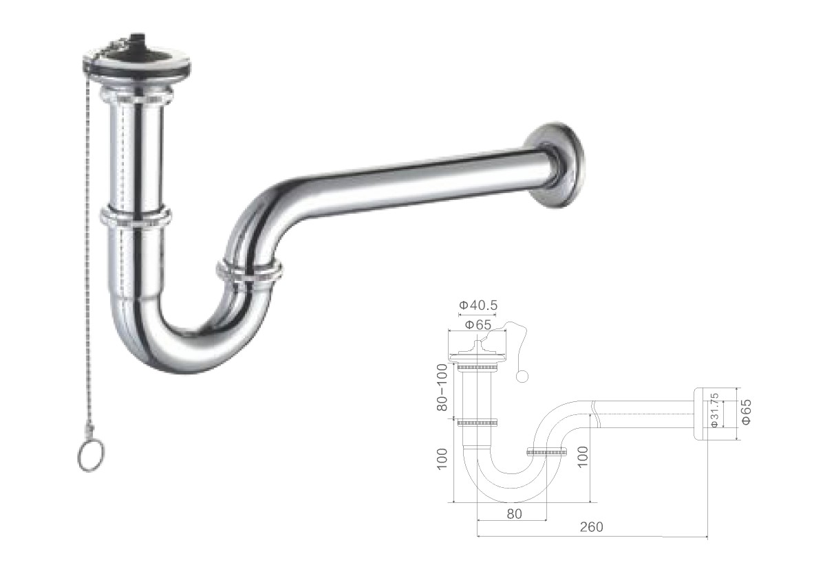 Цинковый круглый сифон с черной лакировкой 1 1/4"