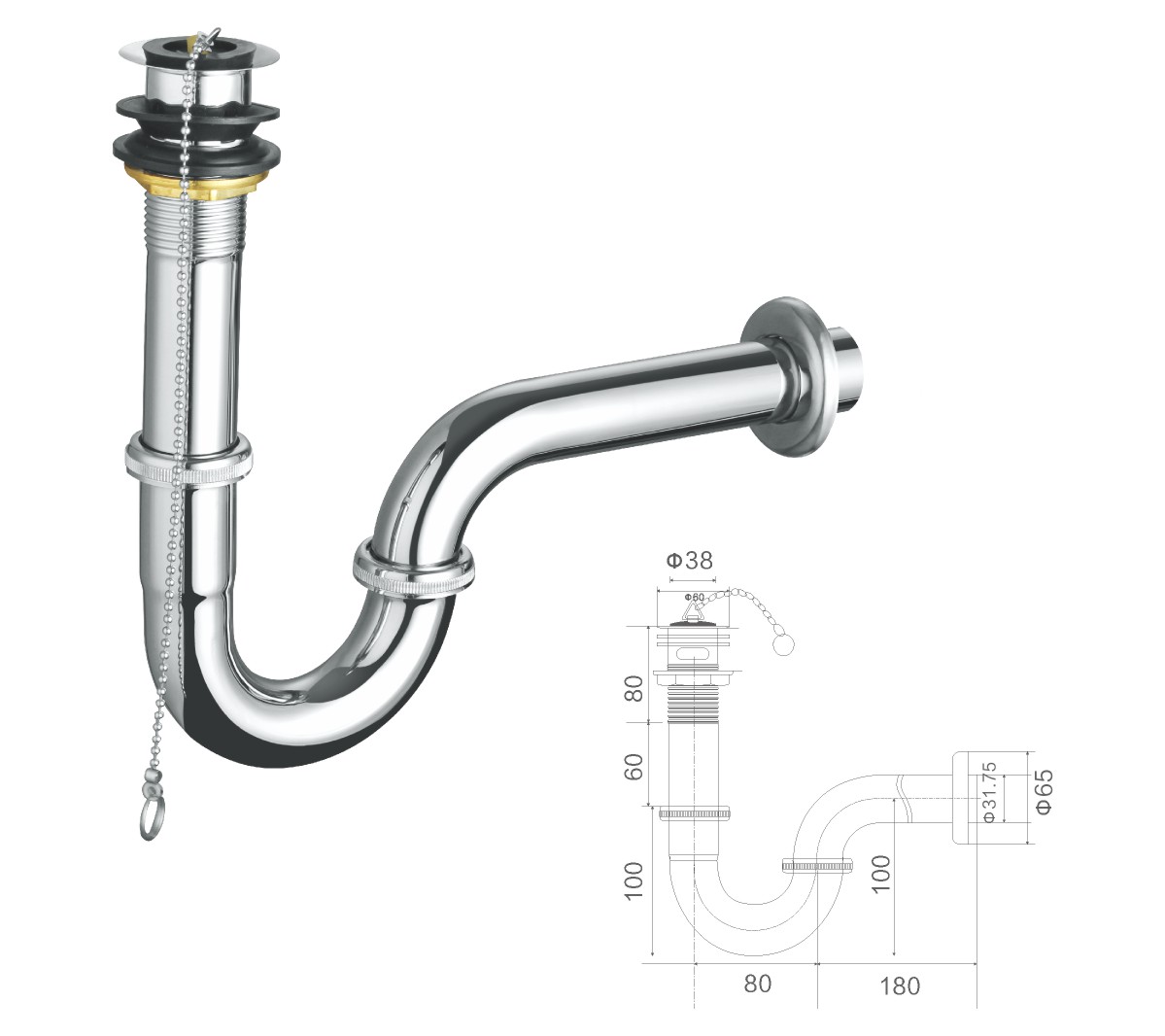 Цинковый круглый сифон с черной лакировкой 1 1/4"